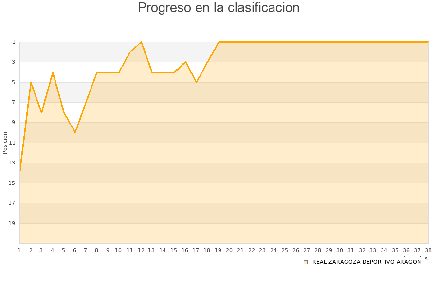 REAL ZARAGOZA DEPORTIVO ARAGÓN | 38 | 22 | 11 | 5 | 65 | 24 | 41 | 77 |