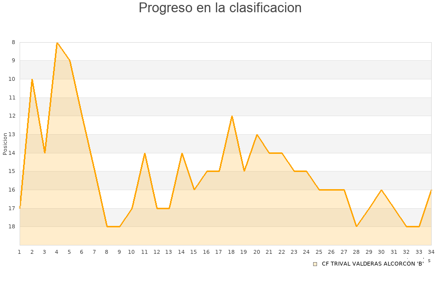 CF TRIVAL VALDERAS ALCORCÓN 'B' | 34 | 8 | 9 | 17 | 25 | 50 | -25 | 33 |
