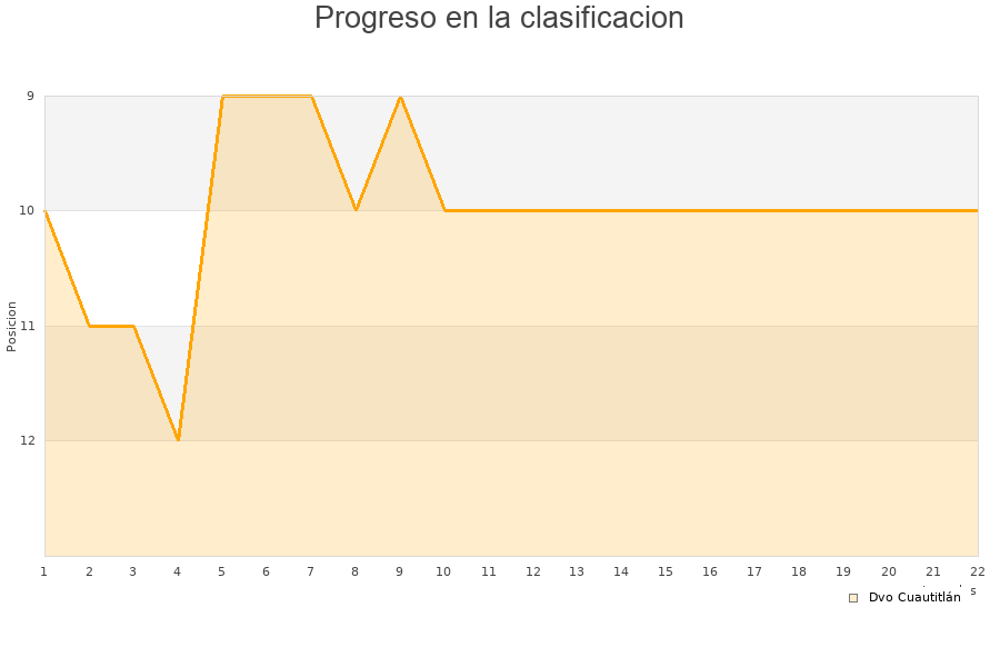 Dvo Cuautitlán | 18 | 3 | 1 | 14 | 23 | 58 | -35 | 10 |
