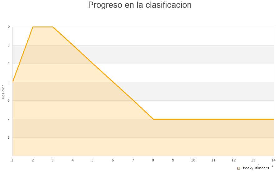Peaky Blinders | 14 | 3 | 3 | 8 | 39 | 54 | -15 | 12 |