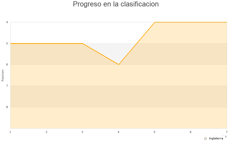 Inglaterra | 7 | 3 | 2 | 2 | 53 | 45 | 8 | 11 |