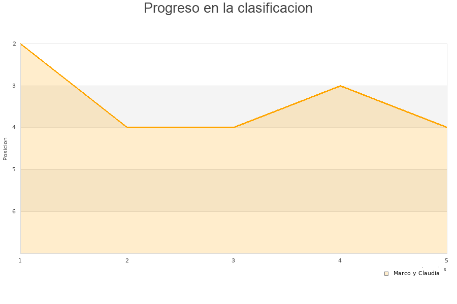 Marco y Claudia | 5 | 2 | 0 | 3 | 44 | 46 | -2 | 9 |