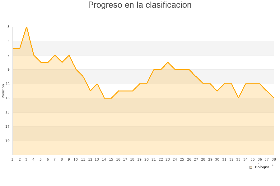 Bologna | 38 | 12 | 10 | 16 | 44 | 55 | -11 | 46 |