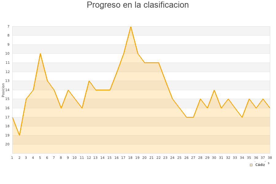 Cádiz | 38 | 10 | 12 | 16 | 30 | 53 | -23 | 42 |