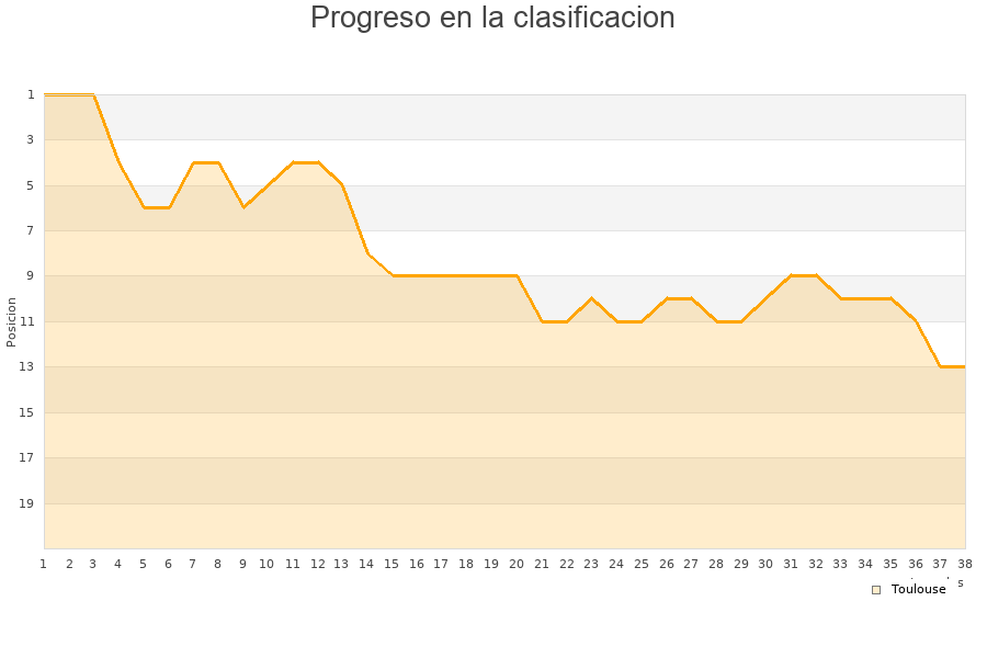 Toulouse | 38 | 13 | 9 | 16 | 51 | 57 | -6 | 48 |