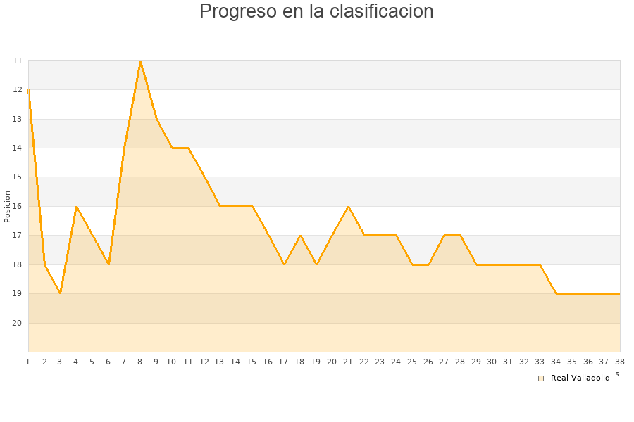 Real Valladolid | 36 | 5 | 11 | 20 | 12 | 38 | -26 | 26 |