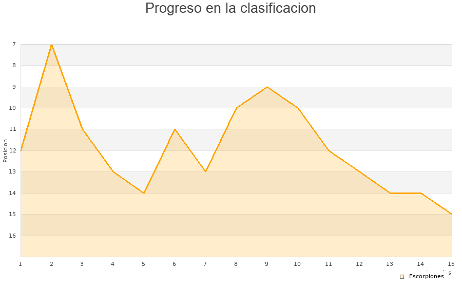 Escorpiones | 15 | 3 | 0 | 12 | 3 | 16 | -13 | 9 |