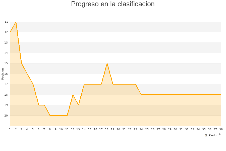 Cádiz | 38 | 6 | 15 | 17 | 26 | 55 | -29 | 33 |