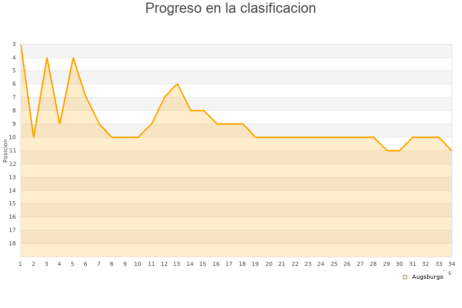 Augsburgo | 34 | 10 | 9 | 15 | 50 | 60 | -10 | 39 |