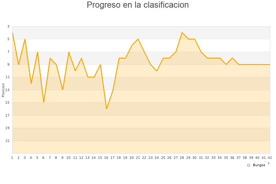 Burgos | 42 | 16 | 11 | 15 | 52 | 54 | -2 | 59 |