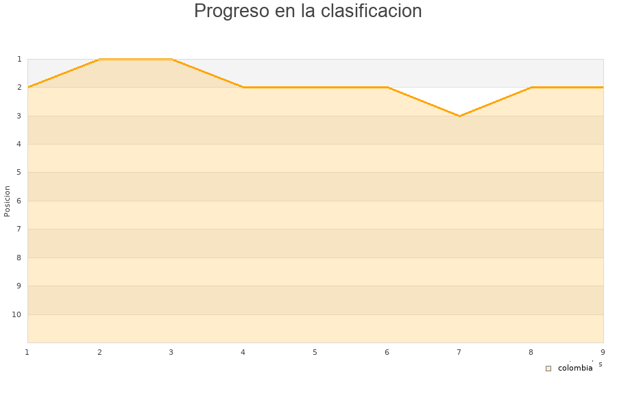 colombia | 9 | 6 | 2 | 1 | 26 | 20 | 6 | 20 |