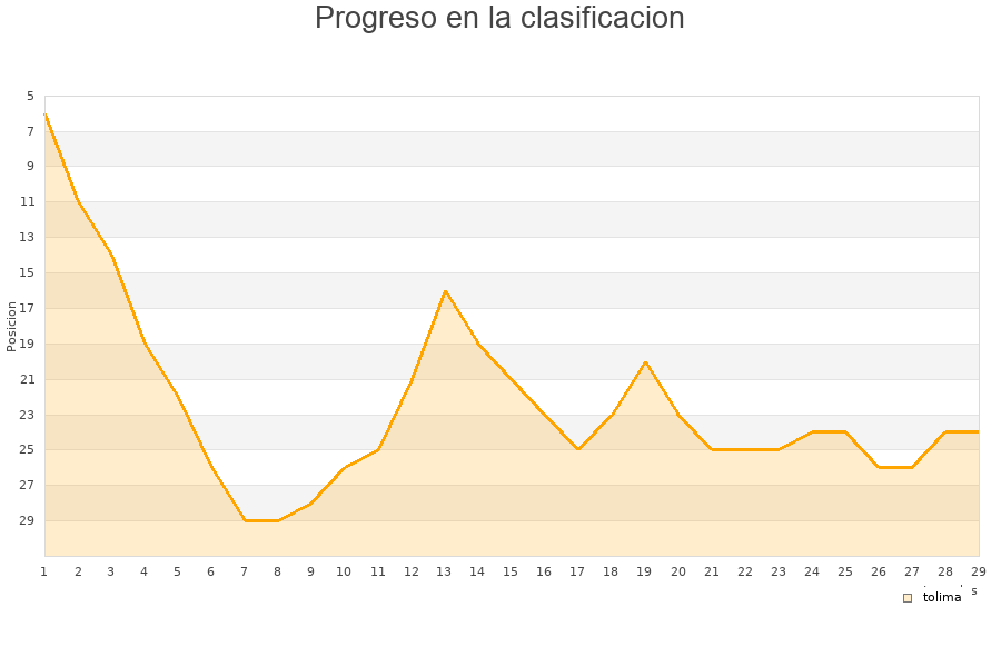 tolima | 29 | 10 | 5 | 14 | 95 | 100 | -5 | 35 |
