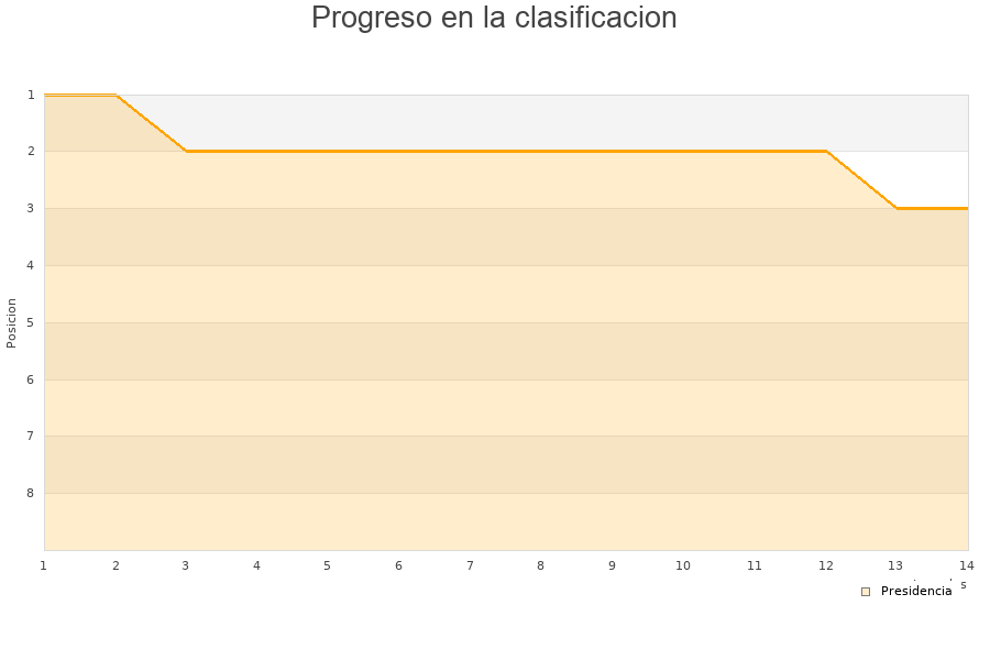 Presidencia | 14 | 10 | 0 | 4 | 694 | 629 | 65 | 30 |