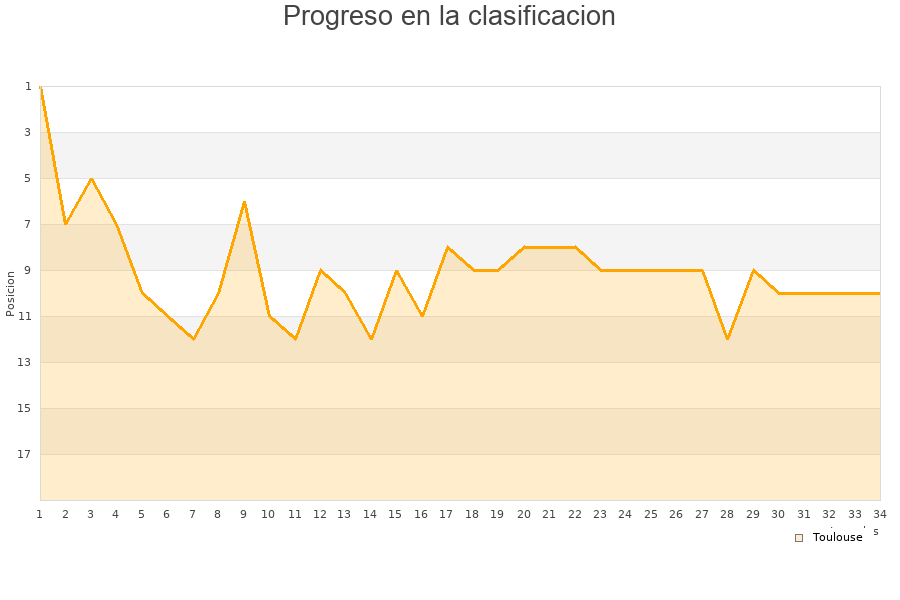 Toulouse | 34 | 11 | 9 | 14 | 44 | 43 | 1 | 42 |