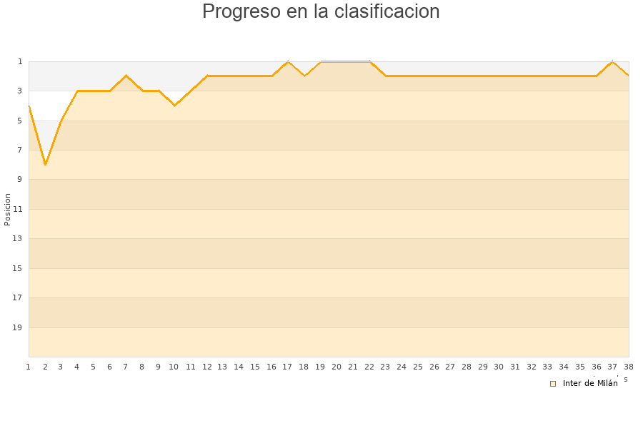 Inter de Milán | 38 | 24 | 9 | 5 | 79 | 35 | 44 | 81 |