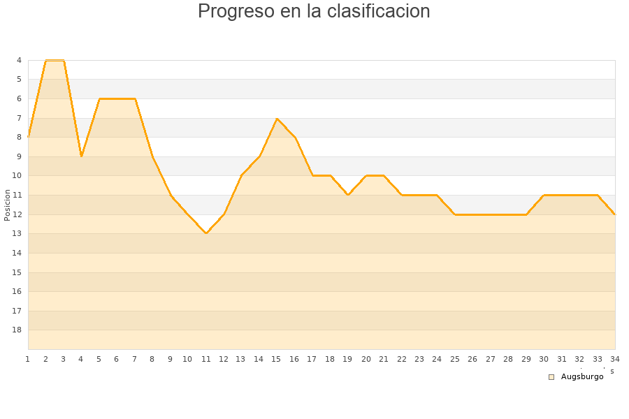 Augsburgo | 34 | 11 | 10 | 13 | 35 | 51 | -16 | 43 |