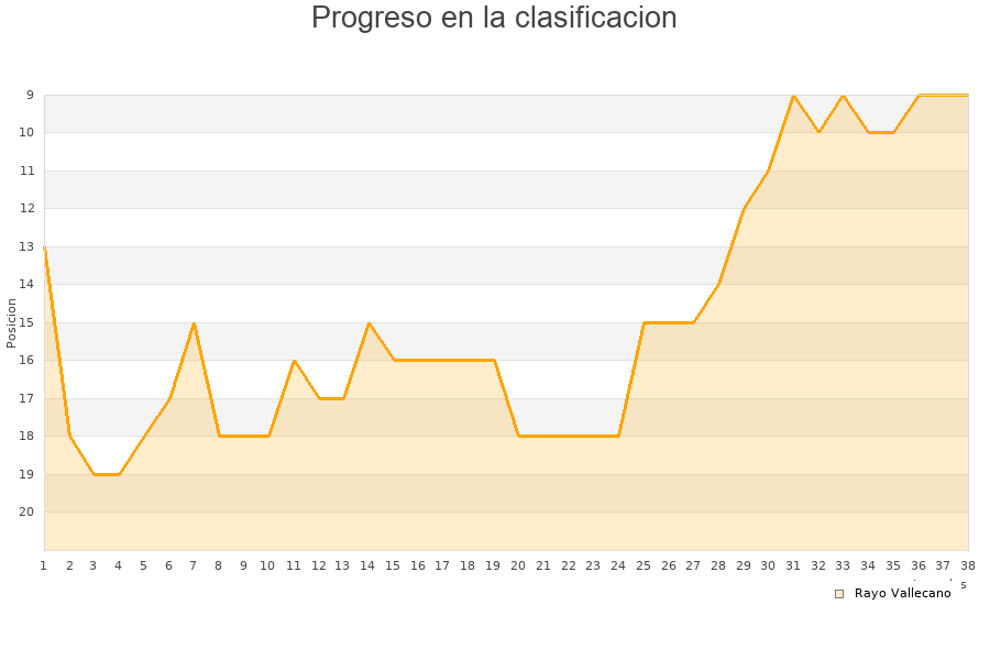 Rayo Vallecano | 38 | 13 | 13 | 12 | 41 | 45 | -4 | 52 |