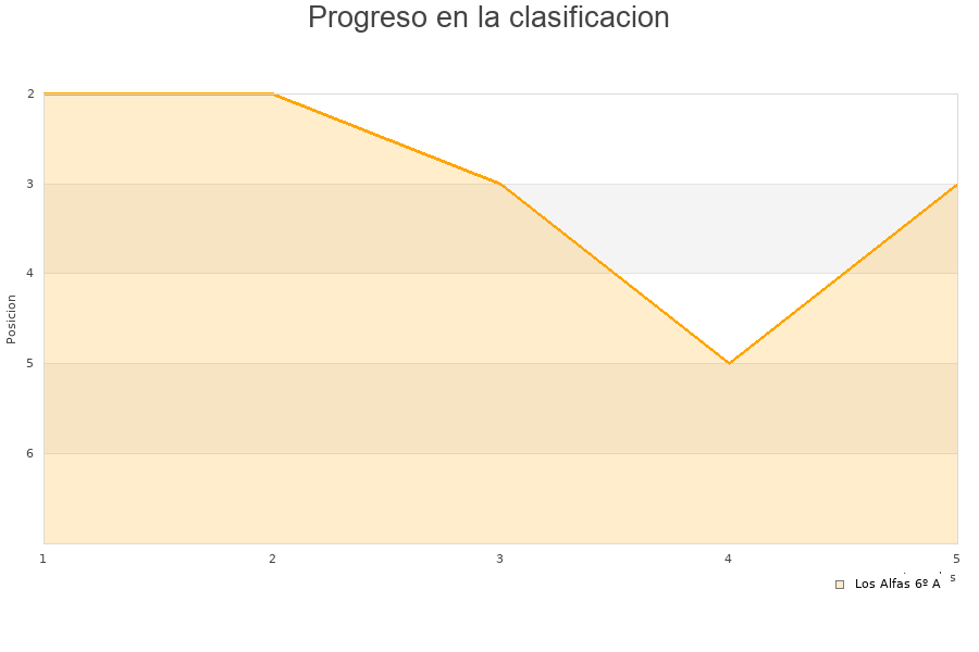 Los Alfas 6º A | 5 | 2 | 1 | 2 | 3 | 3 | 0 | 7 |