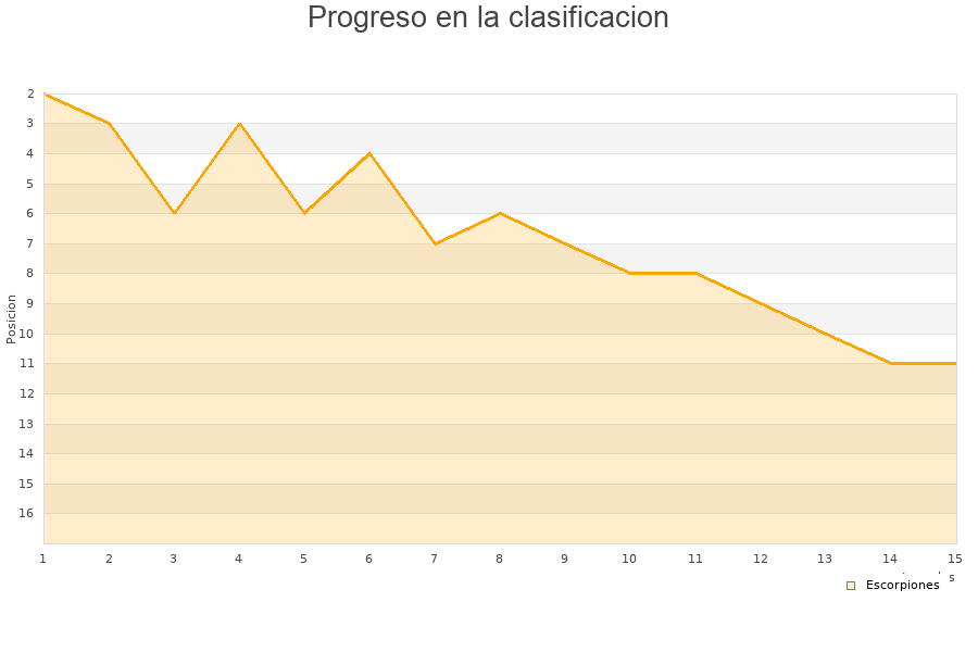 Escorpiones | 15 | 4 | 4 | 7 | 13 | 22 | -9 | 16 |