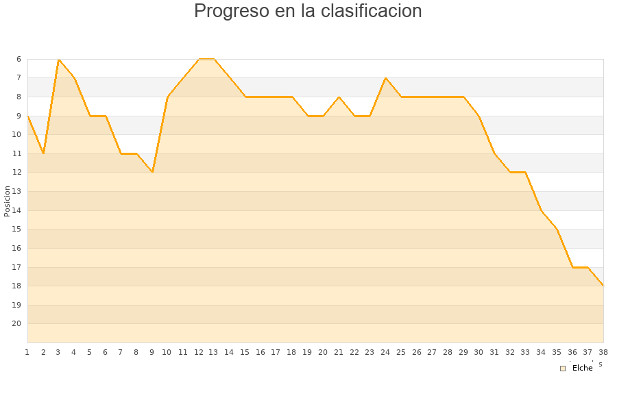 Elche | 31 | 7 | 11 | 13 | 39 | 47 | -8 | 32 |