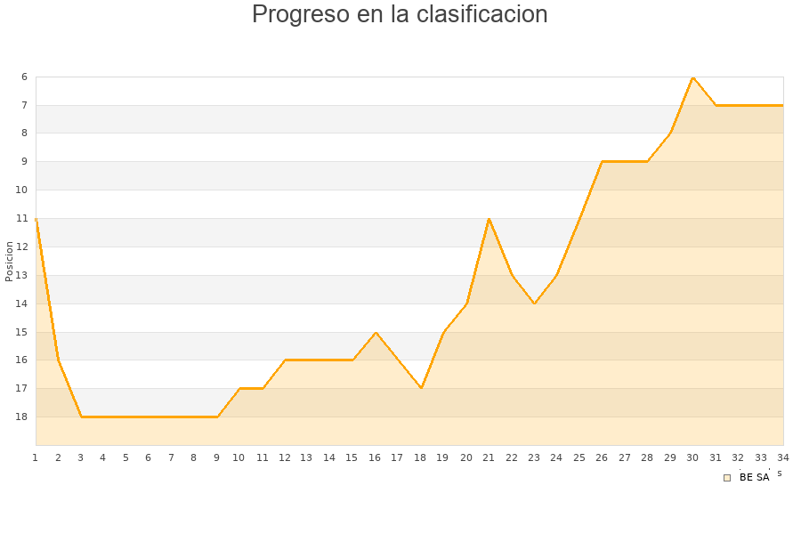 BE SA | 31 | 16 | 1 | 14 | 360 | 372 | -12 | 49 |
