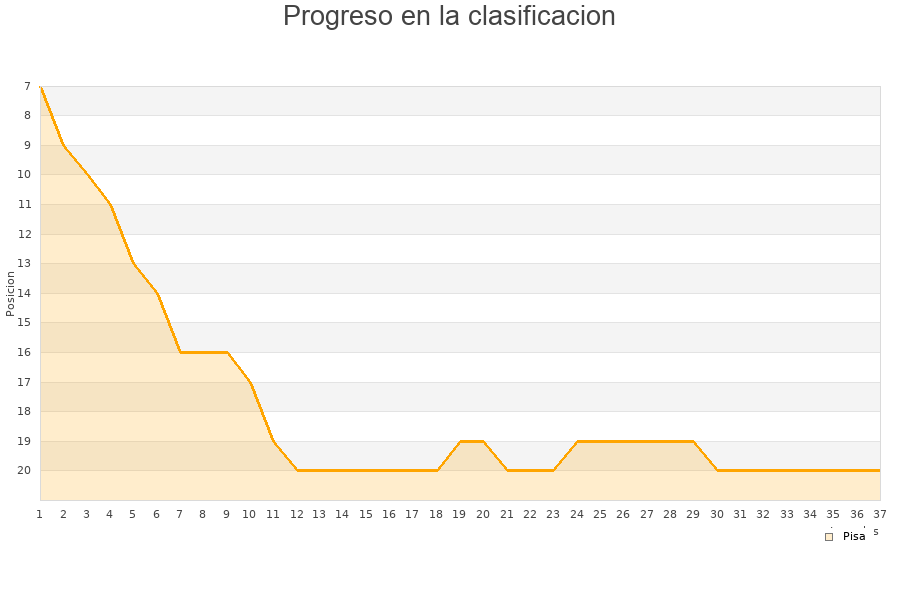 Pisa | 32 | 2 | 12 | 18 | 23 | 58 | -35 | 18 |