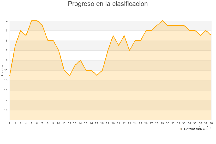 Extremadura C.F. | 38 | 19 | 4 | 15 | 112 | 98 | 14 | 61 |